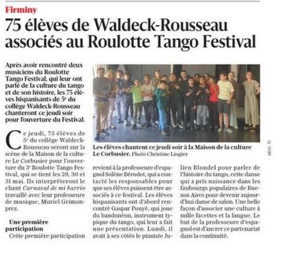 Une trentaine d’élèves volontaires a ensuite chanté pour l’ouverture du festival Roulotte Tango jeudi 29 mai, l’intervention a été enregistrée et diffusée en direct sur Radio Ondaine.
